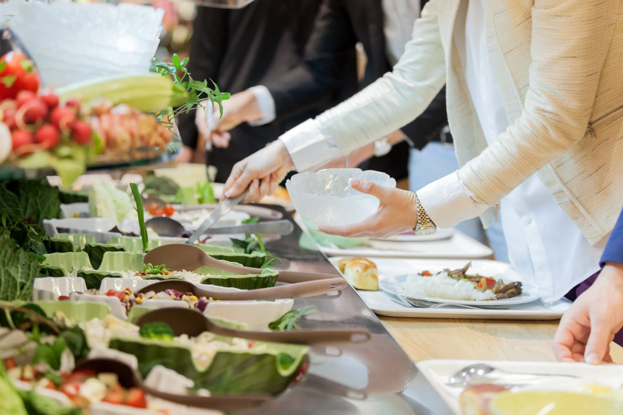Thoughtfully prepared lunch offerings designed to elevate meetings, featuring salads and wraps, boxed meals, and themed buffets.